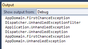 Console.WriteLine("Dispatcher.UnhandledExceptionFilter");