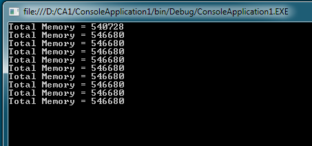 Console.WriteLine("Total Memory = {0}", GC.GetTotalMemory(true));